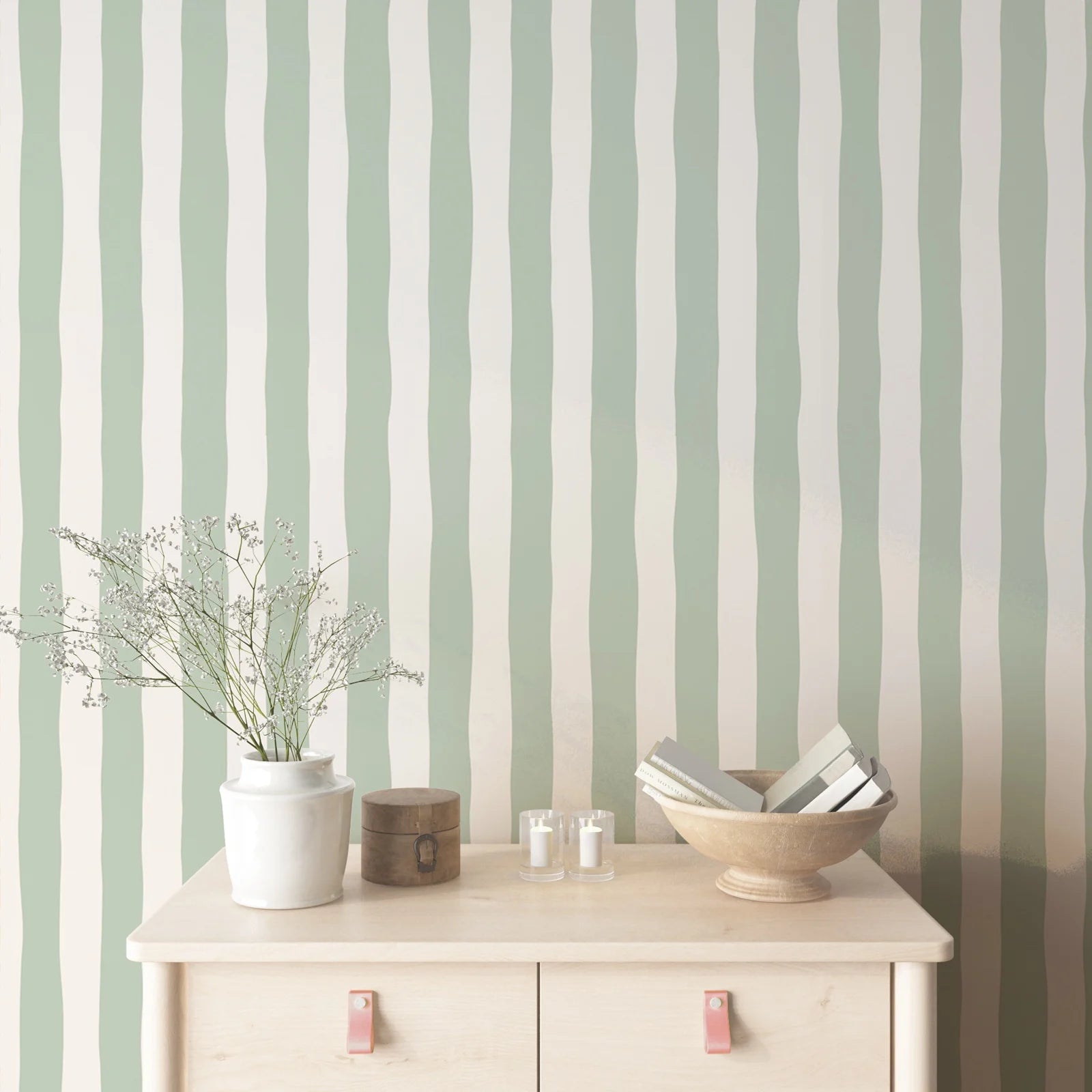 Add a gentle touch of charm and sophistication to your nursery, kids’ room, or play space with our Sage Green Stripes Removable Wallpaper. This modern, minimalist design features soft sage green tones in timeless vertical stripes – perfect for creating a calming and cozy environment your little one will love.