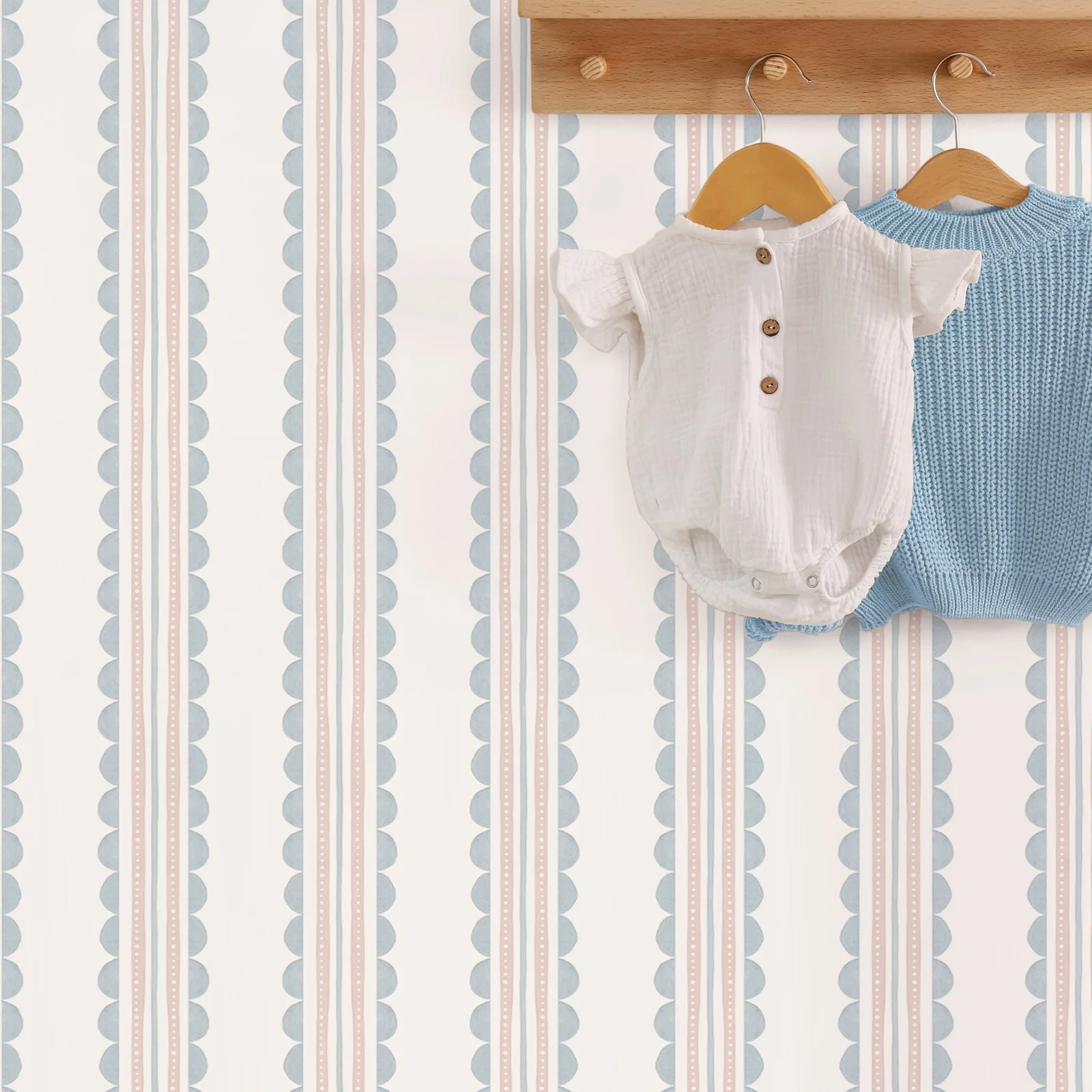 Bring a fresh, modern feel to your child’s room with the Wave Stripes Wallpaper—a soft blend of blue and blush tones designed to create a calming, contemporary backdrop. Its geometric wave pattern introduces gentle movement into any space, making it ideal for nurseries, playrooms, bedrooms, and stylish family areas.